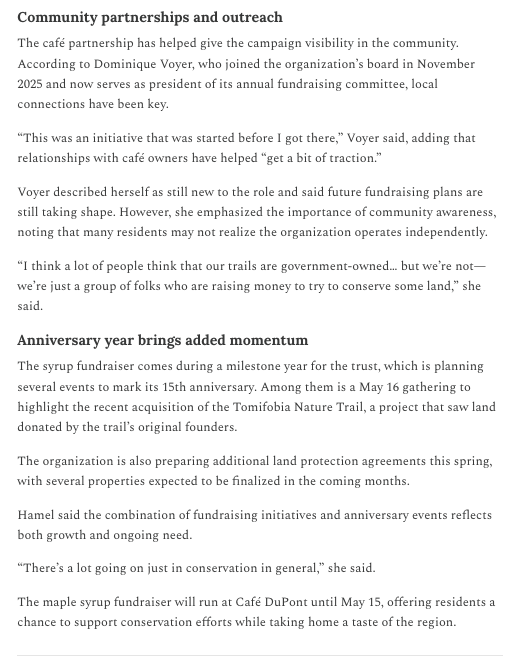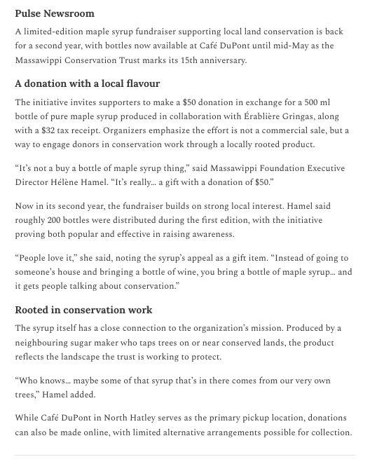 Massawippi Conservation Trust maple syrup fundraiser returns to Café DuPont