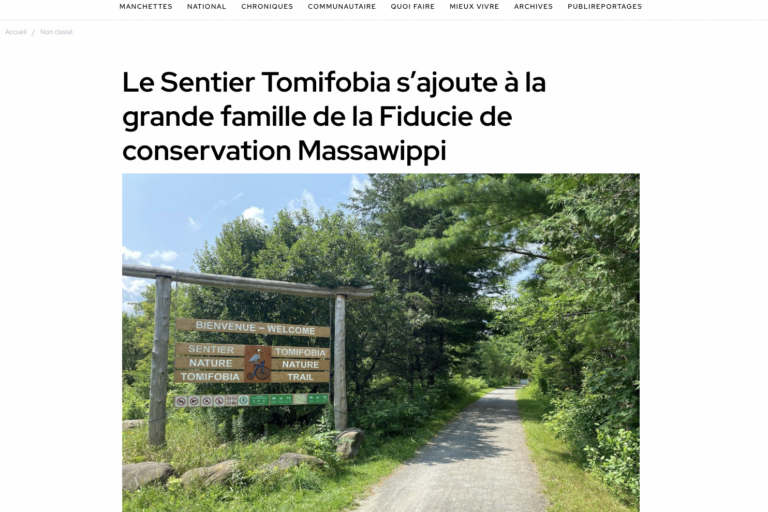 The Tomifobia Nature Trail, jewel of the Eastern Townships, is transferred to the Massawippi Conservation Trust Ayer’s Cliff, December 16, 2025 – Les Sentiers Massawippi and the Massawippi Conservation Trust (MCT) announce the transfer of the Tomifobia Nature Trail. The Tomifobia Nature Trail is a 19-km multi-purpose trail between Ayer’s Cliff and Stanstead. Les Sentiers…